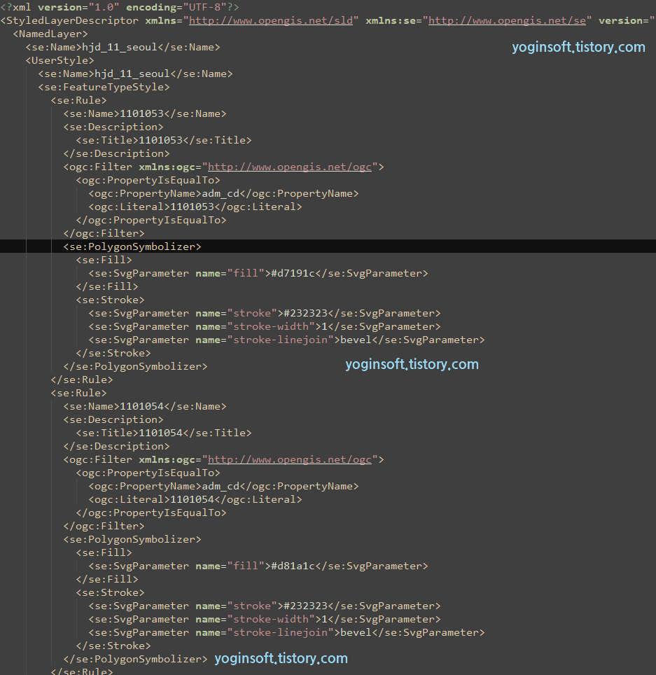 점, 선, 면, 마커, 라벨 등 지도로 표현되는 그래픽을 SLD xml 스키마에 따라 작성해서 스타일을 지정할 수 있습니다. 하지만, 이 XML 스키마라는 것이 무지하게 복잡합니다. 그래서 가장 손쉽게 작성할 수 있는 방법은 QGIS를 이용하는 것입니다.