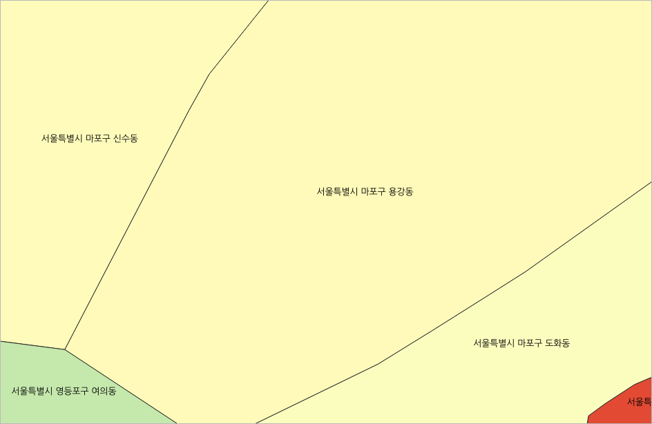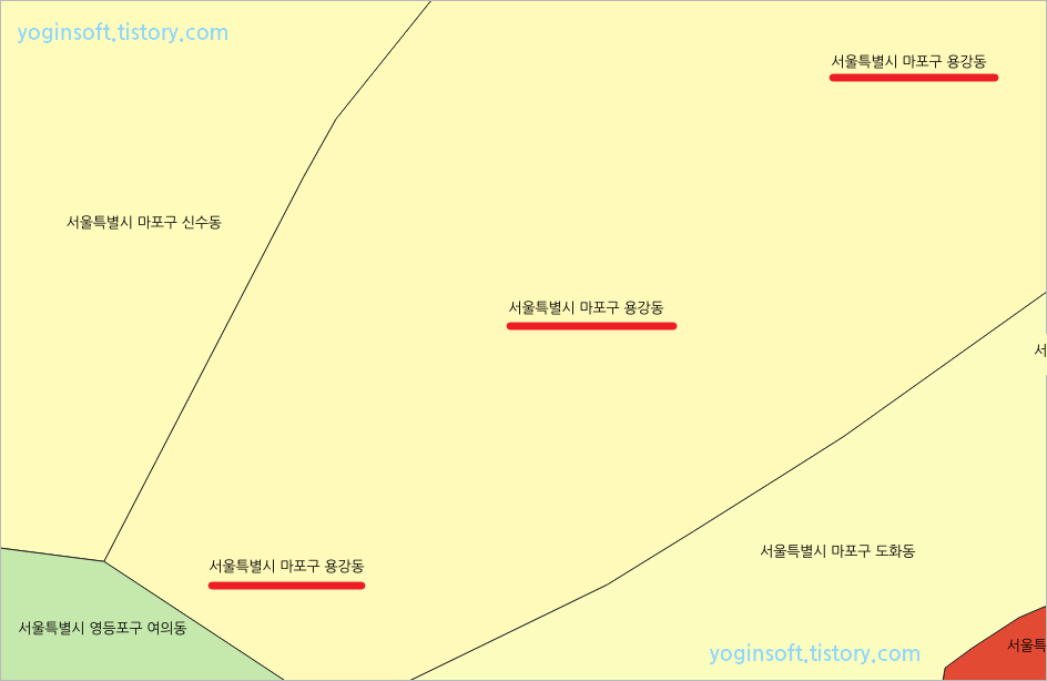 이렇게 centroid 함수를 적용하면 Polygon 도형의 중심에 라벨이 한 번 출력하게 합니다.